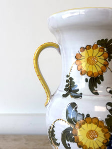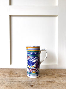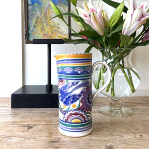 Large Hand Painted Delft Pottery Jug Colorful Floral Design Signed on Base